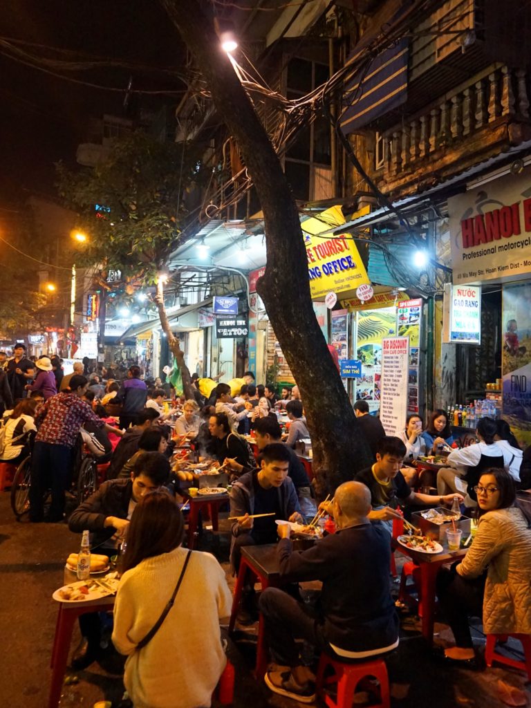 Elle fait un tour du monde de 8 mois avec son copain et est au Vietnam depuis 3 semaines. Elle connaît donc un peu les spécialités locales et m’emmène dîner dans les rues du vieux Hanoï. Ambiance street food 100% locale.